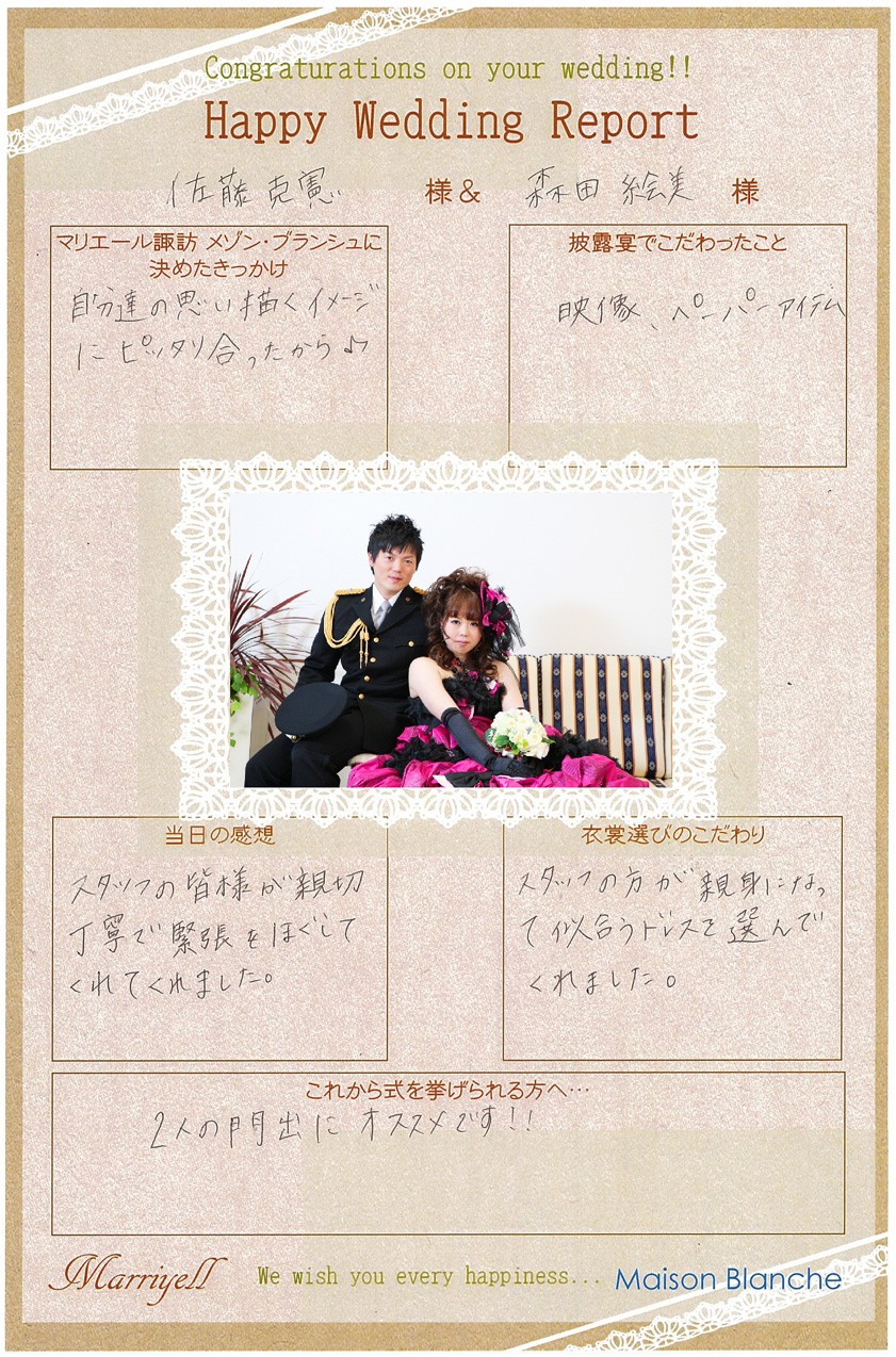 グループサイト > マリエール諏訪 > ウエディングレポート